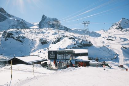 Take the gondola from the valley station in Zermatt to the Matterhorn Glacier Paradise. The ride passes over Furi and Schwarzsee, all the way up to Trockener Steg. Once you arrive, you’ll see our Test Center – just walk over, click into your skis, and you’re ready to go!